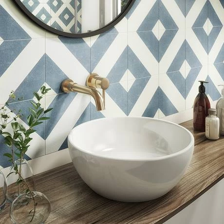 The eye catching Arezzo Round Brushed Brass Wall Mounted Basin Mixer Tap adds a splash of modern glamour to your bathroom. This robust fitting has a projection of 187mm and is made from solid brass with a gently curving spout for refined appeal. A coordinating single lever tap handle allows you to control water temperature and flow with just a touch. The sophisticated look of this minimalist brushed brass mixer tap instantly uplifts your sink area and contrasts beautifully with both white and patterned basins alike.