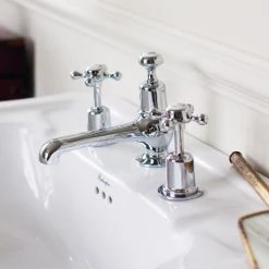 The Burlington Claremont tap range with black ceramic indices is the perfect complement to Burlingtons Jet Black range. This basin mixer is constructed from brass and beautifully finished in chrome. It features traditional screw down valves and comes supplied with a click clack waste.