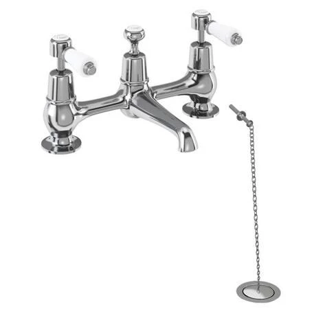 The Kensington range features a traditional design, manufactured to the highest standards using the latest technology. All Kensington taps have a ceramic lever tap head with a ceramic indice in the centre. Comes complete with a Plug & Chain and has the option to have a high level or low lying centre piece for decoration.