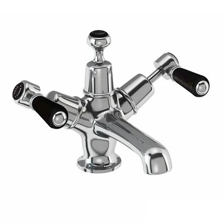 The Burlington Kensington tap range with black ceramic indices is the perfect complement to Burlingtons Jet Black range. This basin mixer is constructed from brass and beautifully finished in chrome. It features quarter-turn valves and comes supplied with a click clack waste.