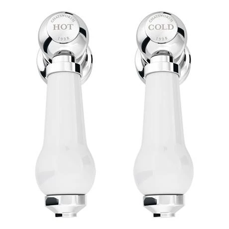 When old world refinement is the goal, opt for these Chatsworth 1928 Traditional White Lever Pillar Basin Taps. The 127mm tall taps have a durable solid brass construction, as well as a light reflecting polished chrome finish that exudes period luxury. With their curved bodies, softly slanting spouts and elegant white lever handles, these traditional basin taps have a distinctly decorative feel. Explore the rest of the Victorian inspired Chatsworth range to discover coordinating designs, from sophisticated shower systems to classic vanity units – all crying out to be crowned with these chrome basin taps.