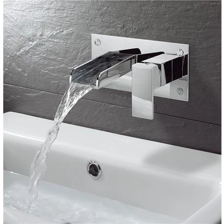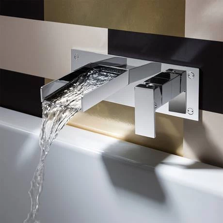Featuring the Water Square tap range from Crosswater. Free up valuable basin top space, whilst creating the latest look with a stylish and easy to use wall mounted mixer.  This tap comes in a chrome plated finish and has a rectangular open spout that produces a stunning waterfall effect. The single lever design allows for ease of operation and control of the flow of both hot and cold water.