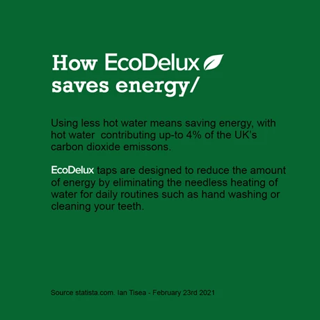 The stunning EcoDelux square water saving basin tap comes fitted with a innovative Eco-Step cartridge. EcoDelux taps have been designed to reduce the amount of energy used by eliminating the needless heating of water for daily rountines such as hand washing or cleaning your teeth. EcoDelux taps can also help reduce water consumption by up to 50%, by delivering half of it’s flow capability with one simple lift of the Lever.Â