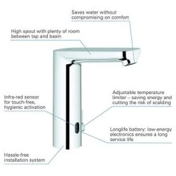 The Grohe Start Mono Basin Mixer features clear cut lines in a contemporary design. The tap features GROHE SilkMove cartridge technology for smooth and precision handling. The StarLight chrome coating not only looks striking – it makes cleaning a breeze and is scratch resistant too. This tap is also suitable for use in low pressure systems.