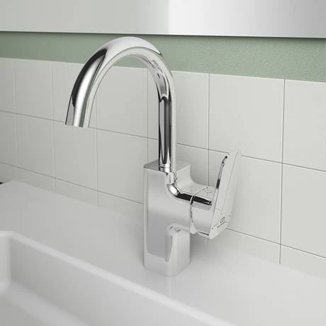 A redesigned classic, the Ideal Standard Ceraplan Single Lever High Spout Basin Mixer is slimmer, simpler, and smoother than ever. This updating version helps you face the challenges of modern living, achieving a beautiful balance of style and technology. It comes equipped with 5 litre per minute eco flow regulator and is quick and easy to install thanks to the Easyfix system.