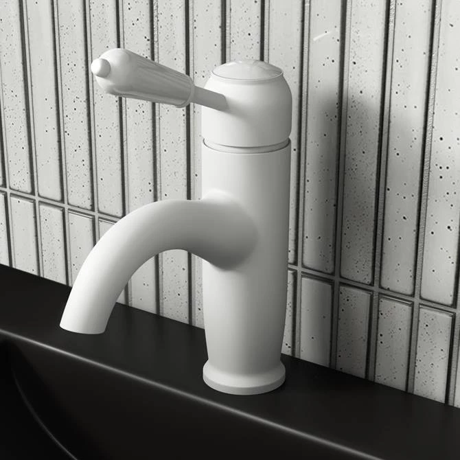 The eye-catching matt white Lancaster traditional mono basin mixer with curved spout, part of our range of traditional bathroom taps with its elegant spout design and expertly crafted white ceramic lever handle, it’s classic design will bring a touch of sophistication to your bathroom. Manufactured from solid brass with a stunning matt white finish. Single lever handle controls temperature and flow of water.